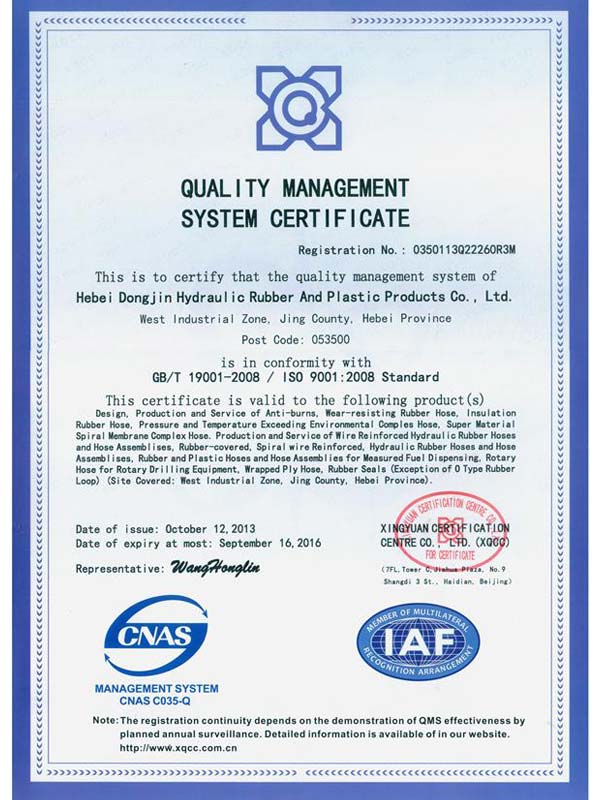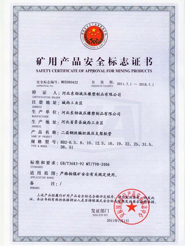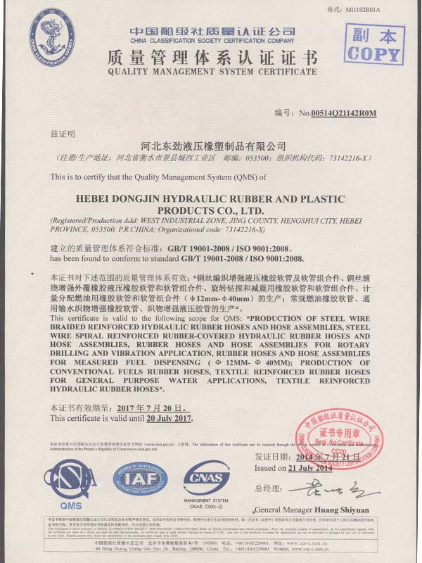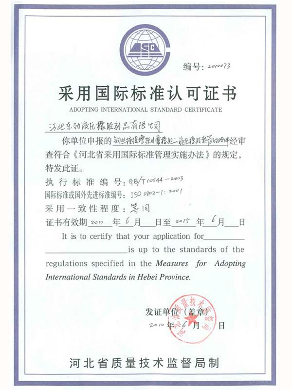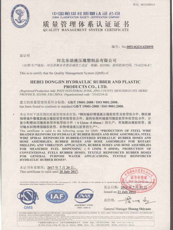 • 鋼絲編織管采用國(guó)際標(biāo)準(zhǔn)認(rèn)可認(rèn)可證書(shū)